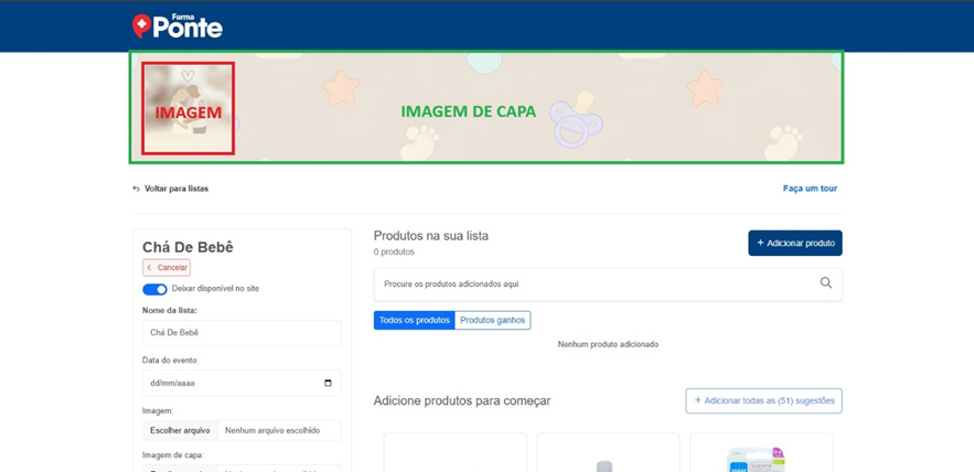 Segue abaixo o processo de criação de listas para chá de bebê.