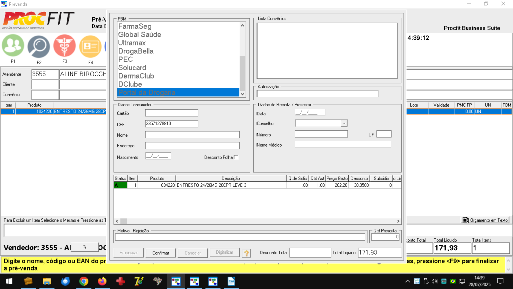 Apos a adesão, voltar ao pré-venda e ir em processar .