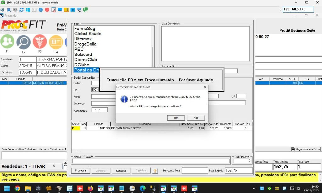 – Alterações realizadas para melhorar o desempenho e eficiência ao utilizar o Portal da Drogaria nas vendas.